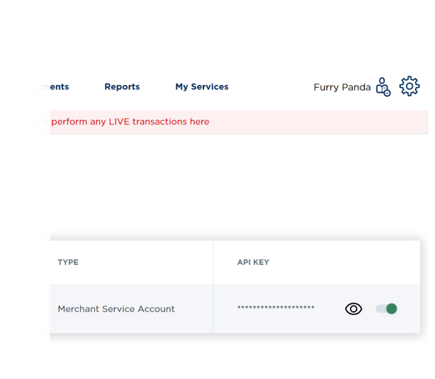 Log into the Sandbox portal and generate a Service Account API Key from the Developer Settings. This key allows your application to securely authenticate with N-Genius APIs.